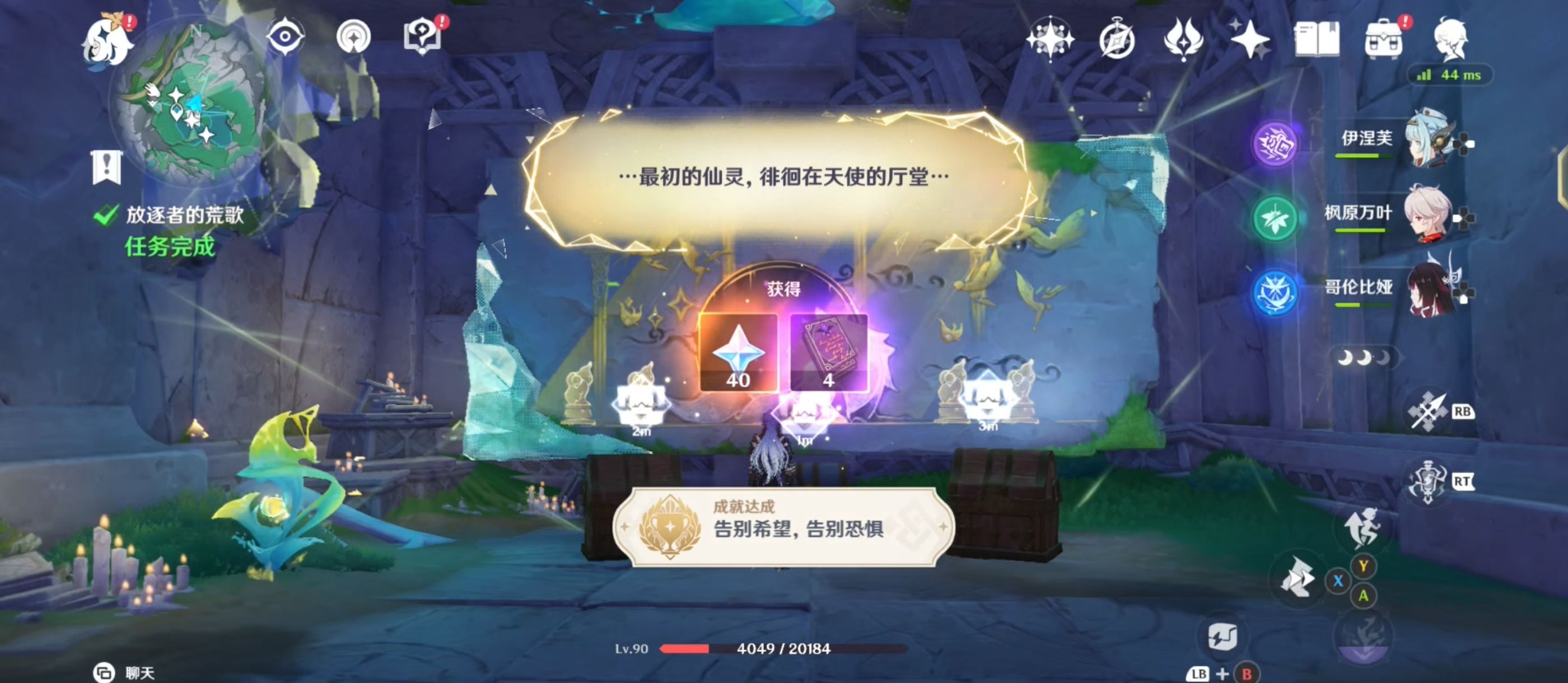 管道完成连接后将出现石板,与其交互后完成任务,出现珍贵宝箱*2、华丽宝箱*1,并获得成就-[告别希望,告别恐惧]。