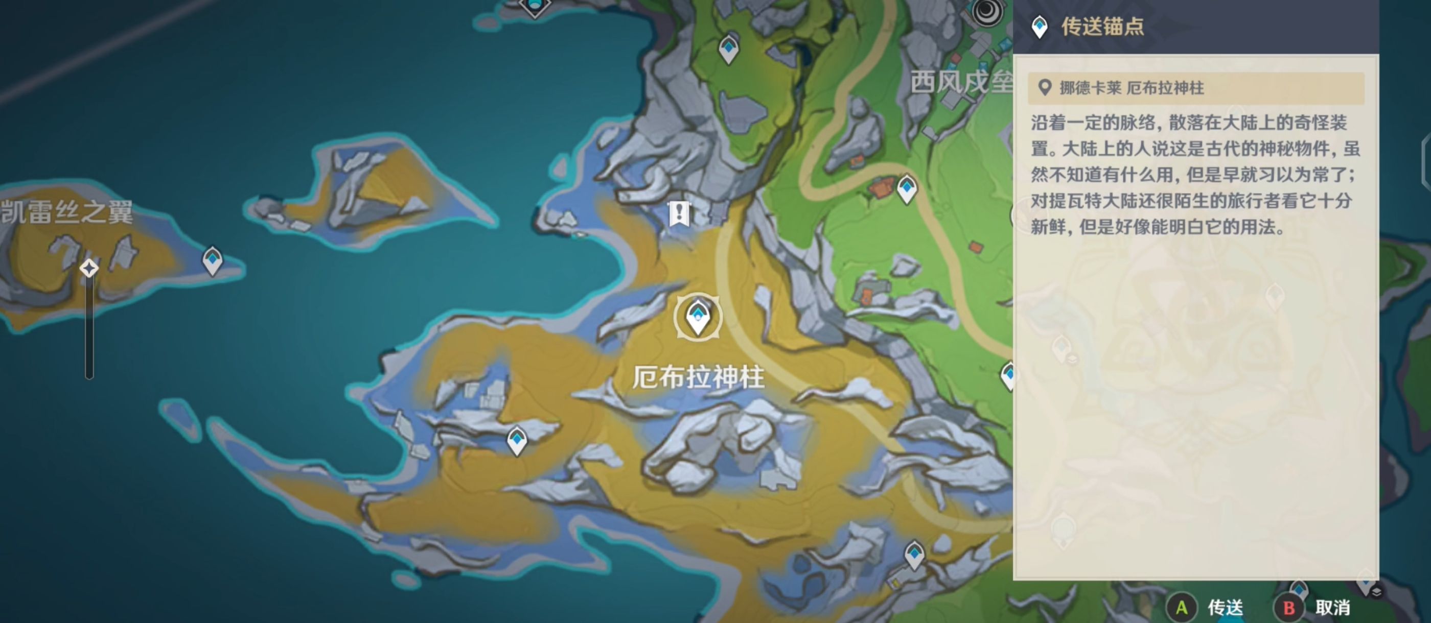 打开地图,来动[厄布拉柱]上方的传送锚点,并前往任务标定处;