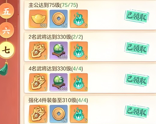 资源就是提升战斗力的核心,如果缺少资源,就算武将很厉害,也不可能会养起来。日常资源的获取千万不要落下,一定要每天清理完日常任务,千万不要漏掉副本挑战,另外还需要去参与游戏中的限时活动,这些全部都是获取升星材料,经验卷,还有武将碎片的主要来源。坚持每一天登录,积攒足够的活跃度,就可以获得稳定的资源,还可以解锁阶段性的奖励,例如等级达标或者装备强化到对应等级之后的奖励,最终就可以积少成多。