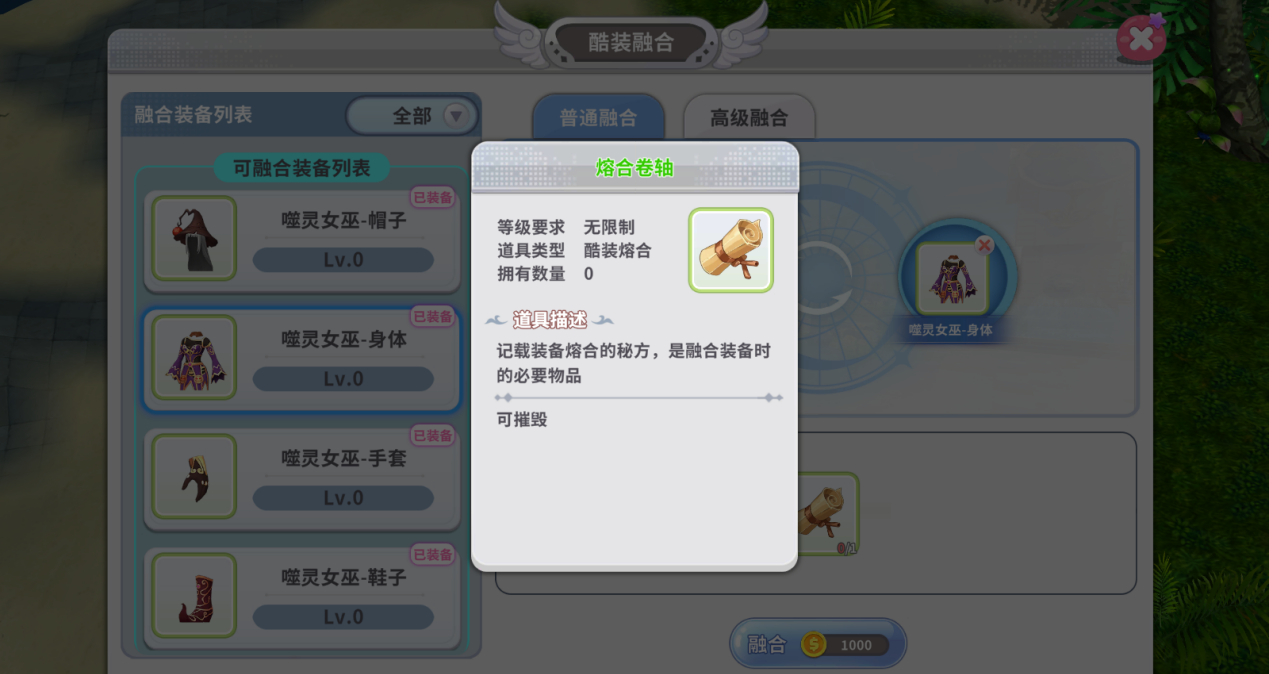 进行融合的条件必备材料:酷装1件、普通装备1 件(建议高属性 / 毕业装备)、催化剂、熔合卷轴、金币。