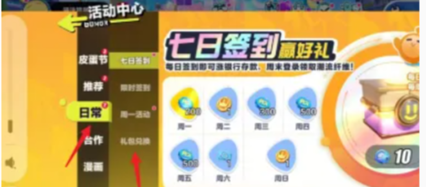 2、然后需要依次点击左侧的【日常】-【礼包兑换】功能。