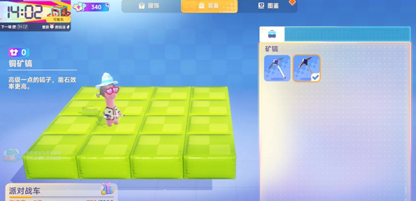 3、合成以后,还需要在换装-装备里面选择铜矿镐再下矿!切记!