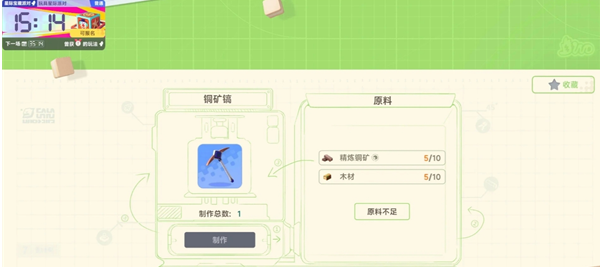 材料方面:木材在星球上砍树获得,铜材通过挖矿获得铜矿石合成获得。