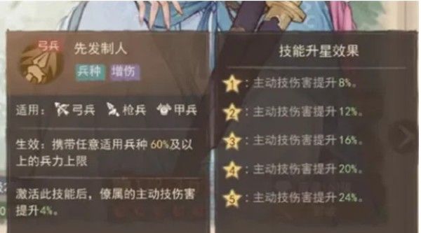 2、不管是推图还是清日常,这个技能点满,伤害提升肉眼可见,前期玩苏显儿,先把兵种技能拉满准没错。