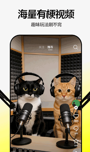创意合拍:支持与热门角色或好友一键合拍,创作有梗剧本视频。