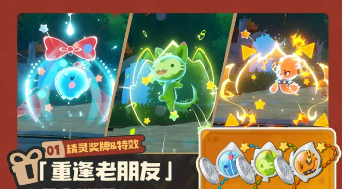 老玩家这边有一个专属活动,叫"不褪色的羁绊",从3月3日开始,一直到5月7日,时间还算充裕。参与活动之后可以解锁一份小洛克羁绊报告,还有两个限定奖励,一个是奖牌叫"重逢老友",另一个是称号"我有我的三小只"。奖牌这里有一个细节,每个账号拿到的奖牌对应的是自己在页游里最早遇见的那只精灵,戴上之后还有专属特效,这个设计挺用心的,等于是把当年第一只精灵的记忆给留下来了。新注册的账号没有记录,系统会随机发一枚,也能参与进来。