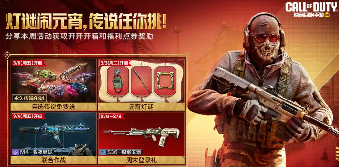 使命召唤手游三月有什么活动?三月的天气一会儿热一会儿冷,但游戏里的气氛可不一样,这周的活动一波接一波排过来,从周福利分享到元宵灯谜,再到传说武器免费领,真的有点让人眼花缭乱。今天小编就带来使命召唤手游三月活动介绍。把这些活动整理一遍,顺便说说哪些值得重点关注,省得战士们到时候漏掉了什么。这次活动内容不算少,仔细看完,能拿到的东西还挺多的。