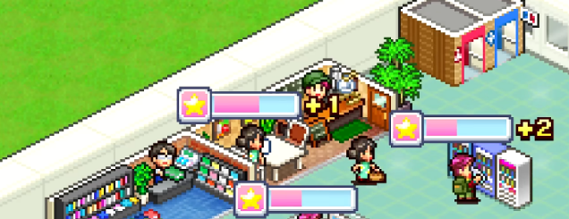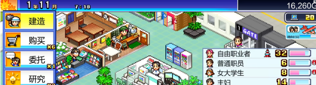 店铺等级上来之后,机场周边还可以开其他类型的铺子,不同店铺之间也有联动提升的效果。比如咖啡店这边,可以配合自动售卖机或者便利店一起开,这样整个机场区域的人气会往上涨,带动的不只是一家店的收益。