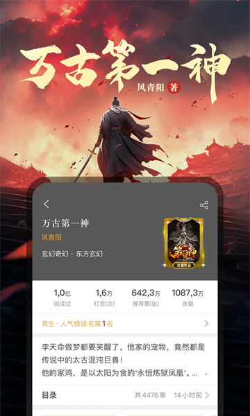 支持整本或章节下载,离线状态也能畅快阅读;订阅小说更新时及时提醒,不再错过任何章节;语音朗读功能可将文字转为音频,适合边做事边听书;提供字体、字号、背景色等自定义设置,打造个性化舒适阅读界面。