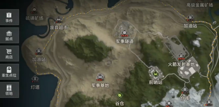 游戏中的三级资源区域,主要是军事基地和污水处理厂这两处,在这里可以拿到蓝色与红色卡片的设计图样。每个点位都会出现5名实力很强的敌人,整张地图一共只有三个这样的地方,4级资源包括火箭发射基地和军事隧道。里面有专门的卡片获取资源,还能找到坦克这种大型作战装备,同样在地图里分布着三个。