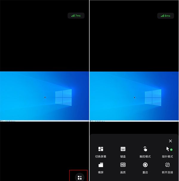 进入到远控桌面后,可以通过远控工具栏进行一系列的远程操作,点击悬浮球图标打开远控工具栏。