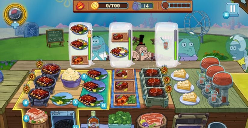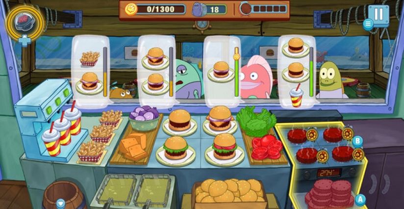 打造属于你的个性比基尼海滩厨房,装点和定制你的餐厅,做好准备,为客人端上美味的餐点!加入这款快餐烹饪游戏,考验自己的管理实力,体验SpongeBob宇宙中疯狂的烹饪玩法。点起烧烤架,开始烹饪吧!