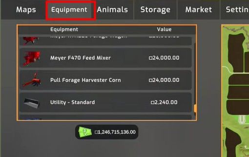 7.进入游戏设置,在“equipment”下,是你现在所拥有的所有设备和交通工具,你可以在这进行出售或者选择驾驶。