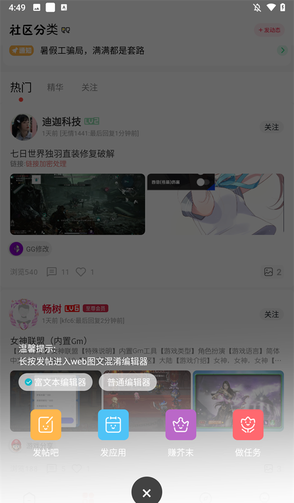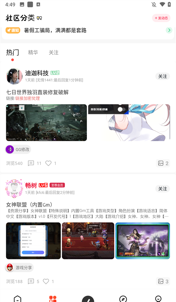 3、点击下方分类可以进入社区,超多小伙伴在这里分享攻略及资源。