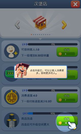 在熟悉中关于商业街上的各类建筑后,玩家便可选择合适的商业建筑加入商业街文化,但在建立完成后,玩家还要对其进行管理工作,点击进入店铺,可以升级改造,这样可以让你所管理的商业街增加更高的人气,同时相应的也能为你带来更多的财富收益,喜欢的朋友,就快快加入商业街的建造行列吧。