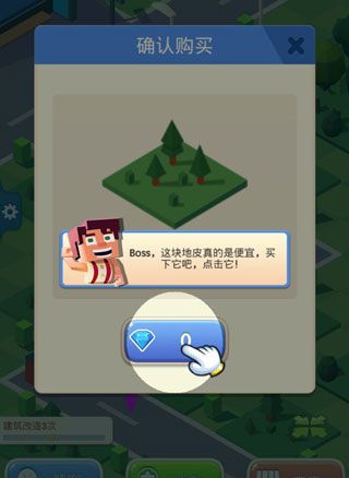 首先要想成功建立起世界级的商业街,就必须先认购一块地皮,通过指导让我们先把他买下来吧,点击进入,可看到这块地皮真的超便宜,点击购买,就由这里开始商业街的初代建设吧。