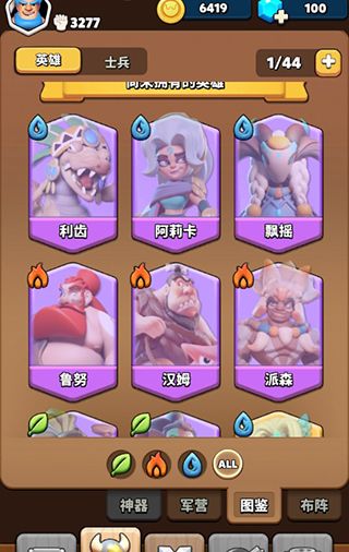 玩家在军营可以看到自己已拥有的士兵和英雄。