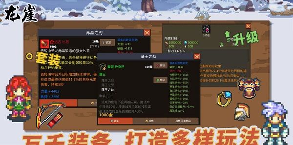 龙崖是一款以像素画风打造的冒险游戏,游戏主要采用了半自动放置挂机的战斗打法,极大的免去了操作繁琐的必要性,在这里玩家只要通过培养冒险者即可体会千万玩家的乐趣!看似简单易懂,实则在玩家培养冒险者的过程中有各种路线。丰富多样的技能、物品和成长体系,对应着不同的玩法策略,期间你还能通过打宝造装备、配置天赋点、研究技法、提升城镇,亦或是对外探索、解锁卷轴来打造风格各异的强大战队!