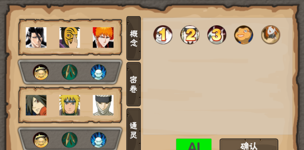 3、进入选角界面,选择三个角色组成队伍,在挑选三个对手,同时,玩家还需要择取得三个不同的密卷以及通灵,玩家需要谨慎选择,密卷和角色的搭配是很有战略的,控制替身的机遇也很重要
