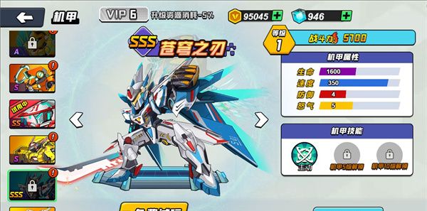 4、机甲系统查看机甲的属性,并解锁新的机甲