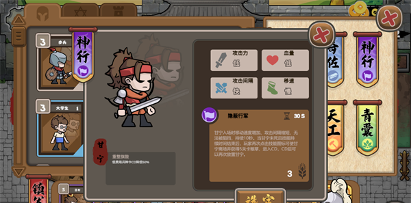 2、角色成长系统:通过战斗积累经验,提高将军的能力,解锁新技能,增强战斗力。