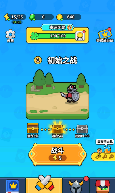 1、进入游戏之中,直接点击中间的战斗选项,进入游戏之中迎接战斗。