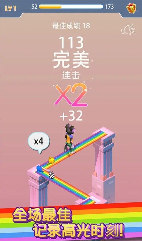 2、每个关卡的彩虹桥结构都会有所不同,玩家需要适应不同的桥面布局,避开障碍物,持续前进;