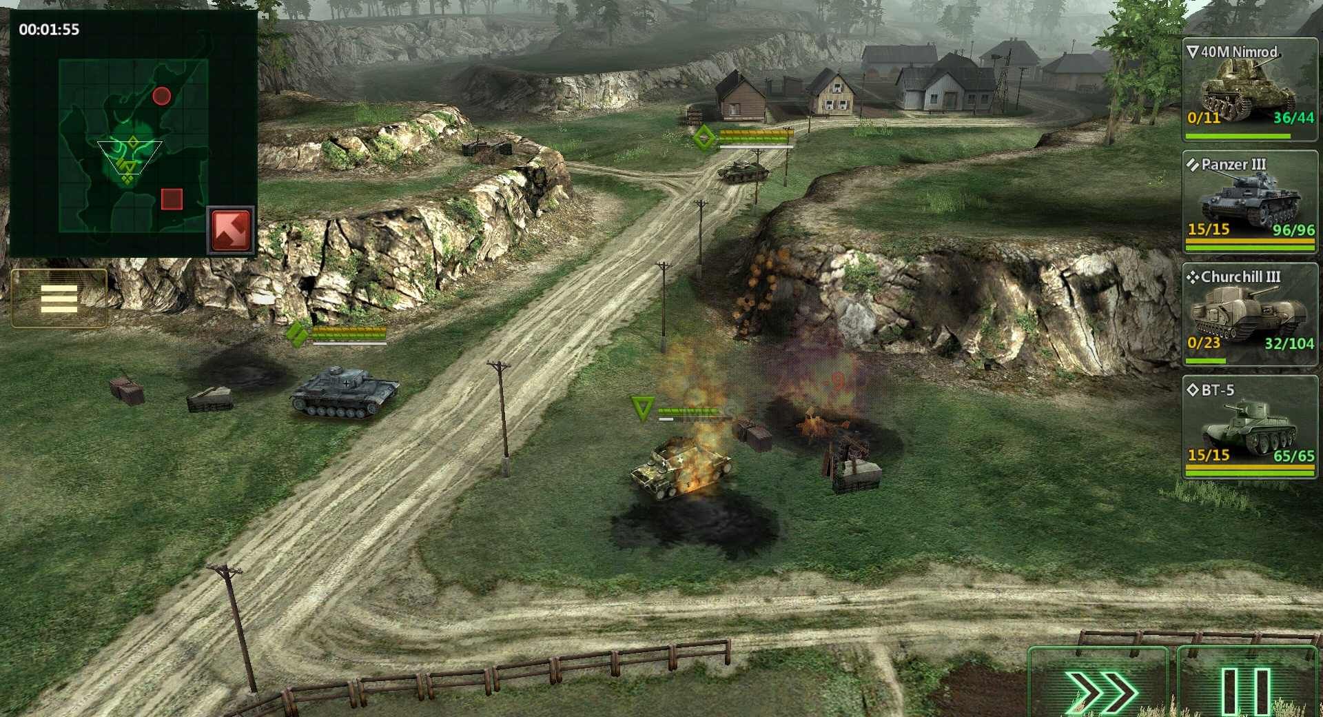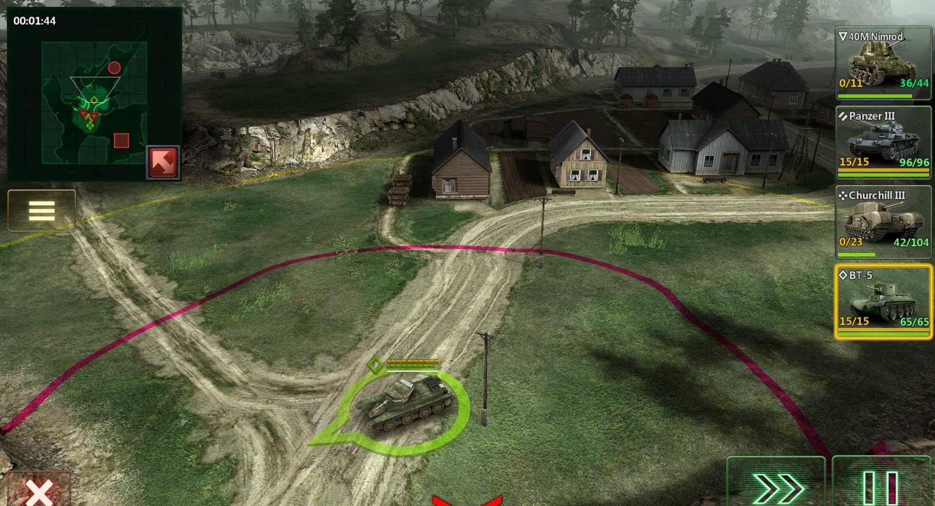 玩家可以拖动每一辆坦克在地图上移动,然后指定目标进行攻击。当然每一辆坦克都是有特点的,比如说有的坦克虽然攻击力不强,攻击范围小,但是移动速度较快,并且侦察范围强,适合在前面探路。