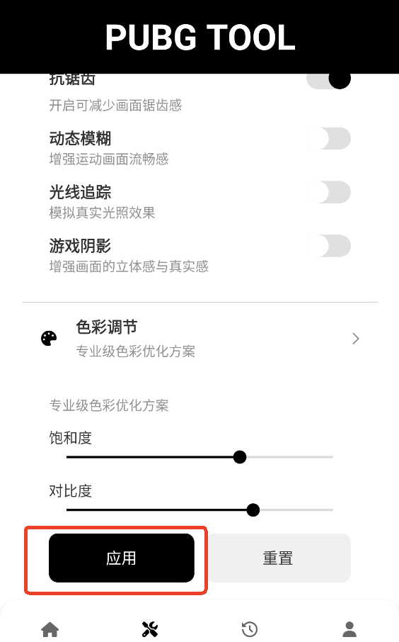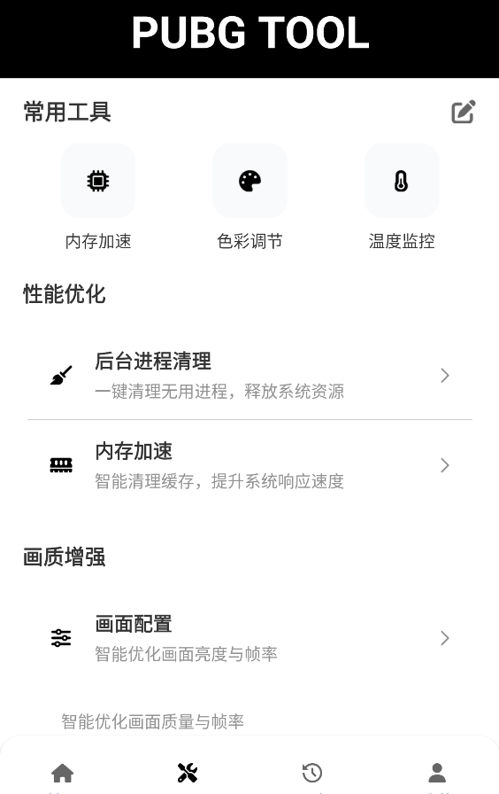pubg toolapp是一款专门为和平精英等吃鸡游戏玩家设计的画质修改软件。可以有效地帮助玩家修改大逃杀游戏的图像质量和帧率,从而使游戏体验更加舒适。界面简洁干净,没有广告。它可以完美地适应各种手机型号,并支持多个版本的大逃杀游戏。它完美地解锁了120FPS帧率。您可以自行修改游戏分辨率,启动游戏引擎,提高游戏运行速度,保证游戏流畅性。