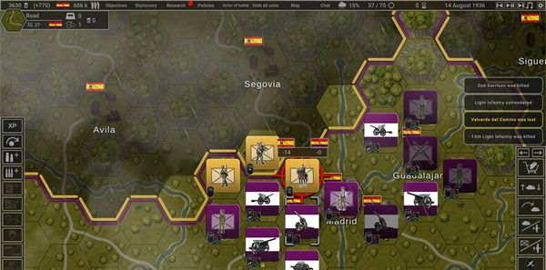 -六角棋盘战场:游戏采用独特的六角棋盘作为战斗画面,这种设计为战场增加了更多的策略性和复杂性。在六角棋盘上,玩家需要灵活地部署自己的战斗单位,包括步兵、坦克、飞机等。每个单位都有其独特的特点和战斗力,比如步兵行动灵活、适合占领据点,坦克火力强大、能突破敌方防线,飞机则可以进行空中打击和侦查。玩家要根据单位的属性、地形以及敌人的部署等因素,合理安排自己的兵力,以取得战斗的胜利。