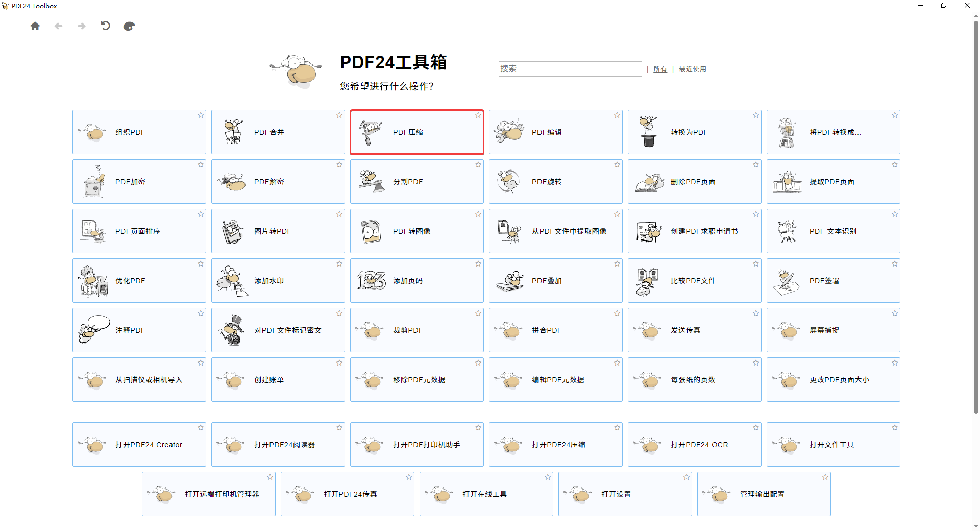 1、打开PDF24桌面版,选择PDF压缩功能