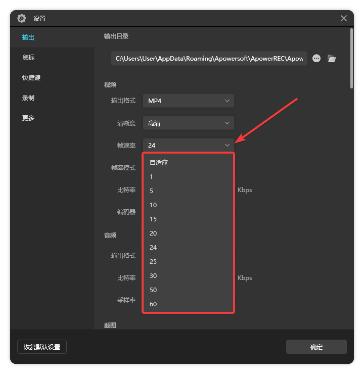 2、录制的视频拥有mp4、mkv、mov、wmv等多种输出格式
