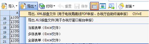 1、选择“导出. XML报盘文件 (用于电税局离线PDF申报、办税厅自助终端申报)”。
