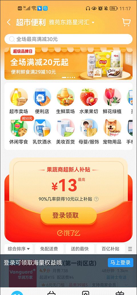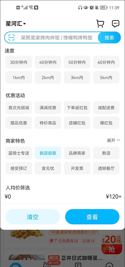 1、在饿了么app最新版本首页中有筛选功能,选择到店自取功能即可。