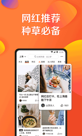 1.它是一个覆盖广泛生活方式的移动分享平台。在这里,不仅有新的热门商家/景点等丰富的目的地信息,用户还可以签到并上传照片和评论。在不确定吃什么做什么的时候,用户可以去大众点评网寻找附近推荐的餐厅、酒店、民宿、景点门票等。