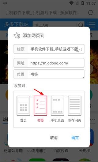 2、可以自己填写标题,选择添加到书签,点击确定。