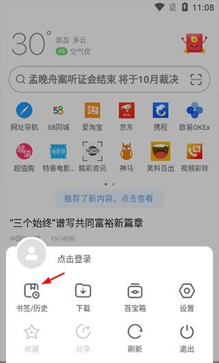 欧朋浏览器怎么添加书签