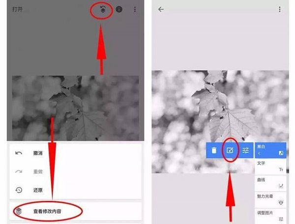 第二步,点击右上角箭头-查看修改内容-进入蒙版选项。