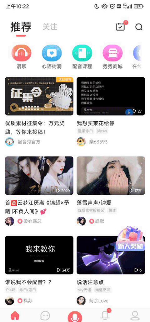 1、下载安装好配音秀app,进入软件,选择配音素材并点击进入。