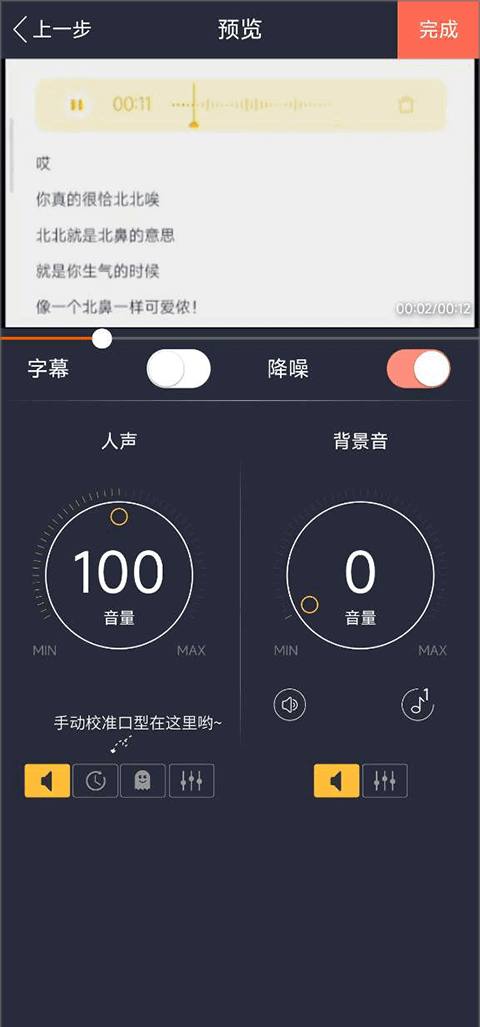3、保存之后你可以进行对杂音的调整,最后点击右上角的完成