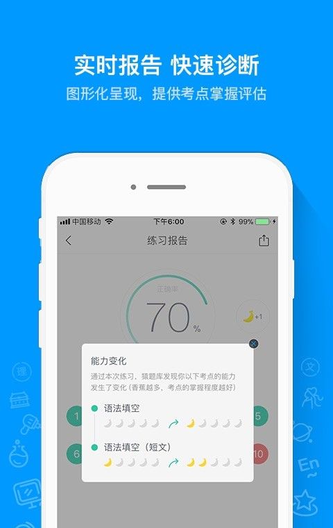 3、实时提供做题报告、评估能力、预测考试分数:让所有人见证你的进步;