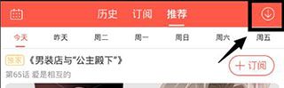 3、点击*上面“推荐”旁边的“下载符号”就可以将今天更新的漫画全部下载啦!(下载完成,下载符号会变成√)
