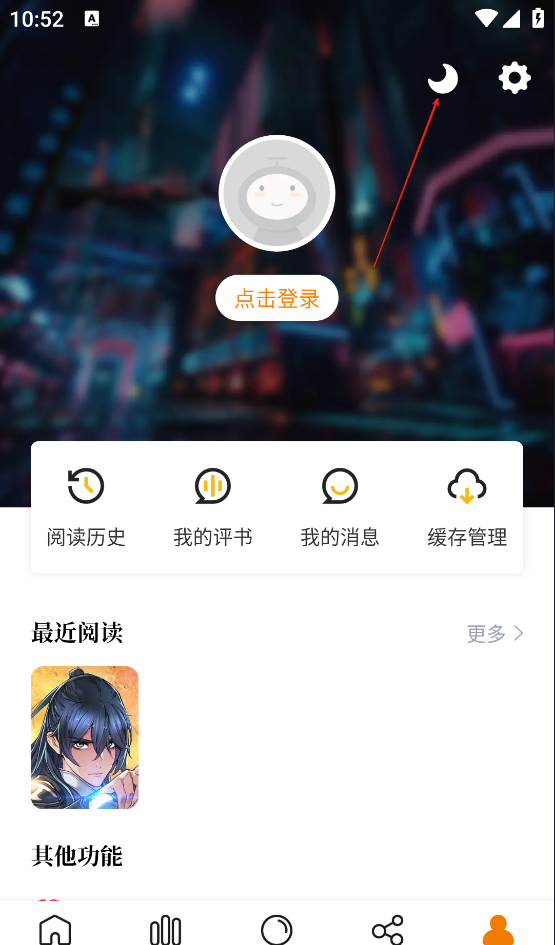 2、点击月亮切换夜间模式。