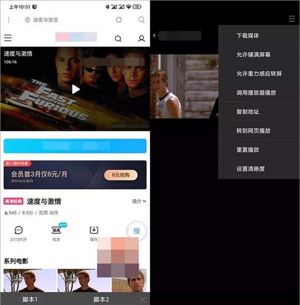 相关视频页面下方会出现“剧本1”和“剧本2”,点击播放。播放器功能支持设置清晰度、下载媒体、调用播放器播放,如MX Player播放器。