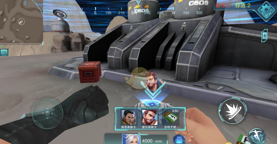 四、资源收集在地图上,每个房间和野外的一些地方,会随机刷出各种道具资源,例如头盔、防弹衣、鞋子、英雄卡、子弹、技能卡、回血包等。当发现道具资源的时候,只要靠近这些道具,点击图标,就可以成功收集这些道具了。收集到的这些道具会存放在背包内,点击背包即可查看并使用。
