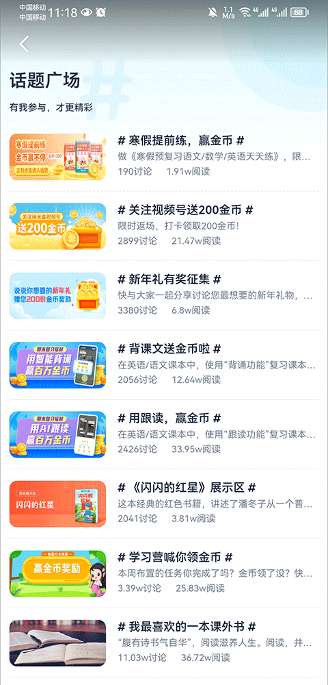 2、然后在话题广场中,选择一个合适的话题
