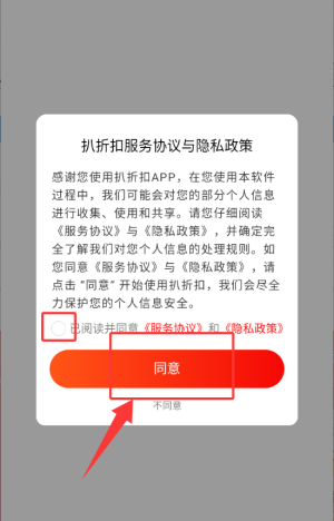 1、下载软件后安装打开,勾选同意服务协议与隐私政策后进入。