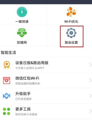 3、打开之后看到很多功能,设置WiFi需要打开“路由设置“,找到并打开。