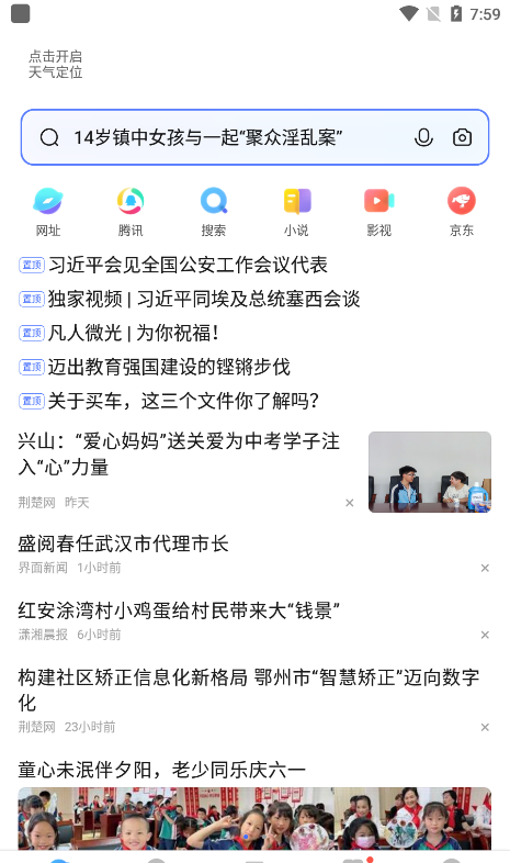 1.打开vivo浏览器可以直接进入搜索界面,浏览器上方也会显示天气,非常贴心;