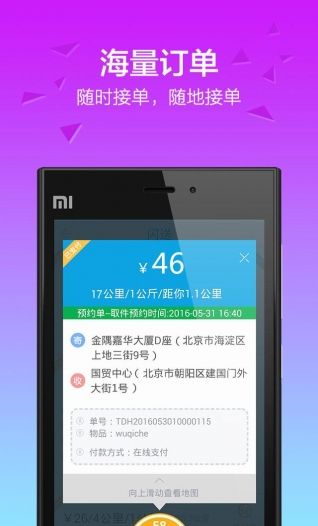 2、按单结算,月入千元(个人报酬=物品重量+配送距离+奖金);